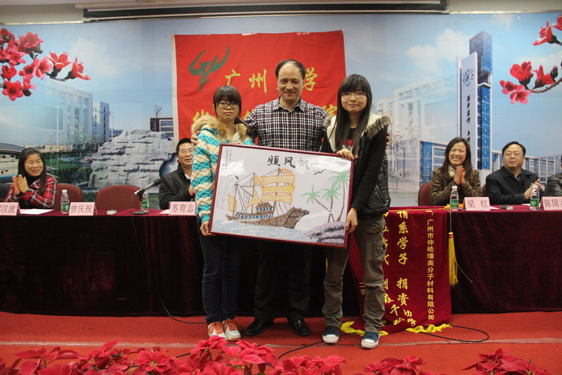 向区总赠送“情系学子,捐资助学;功在当代,利在千秋”的锦旗,受助学生赠送“一帆风顺”的手工拼图,表达了他们对企业蓬勃发展的良好愿望。