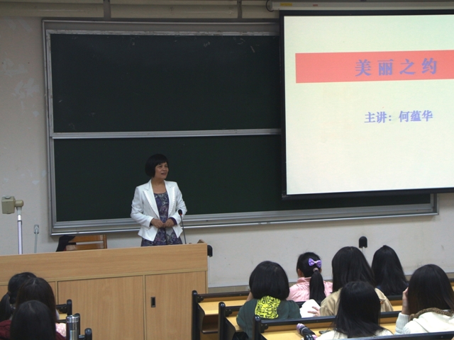 党委书记何蕴华特别为全院女生主讲了“美丽之约”讲座,这场关于美的体验和修炼的审美讲座在文新楼119阶梯课室举行。