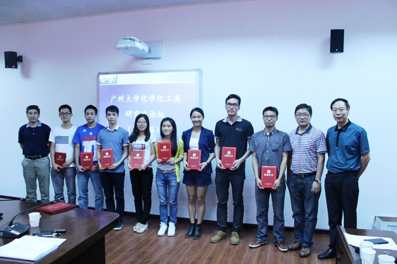 联合主办、广东省化工学会高校化学化工专业委员会协办。论坛邀请了来自中山大学、华南理工大学、华南师范大学和广州市二轻工业科学技术研究所的6位专家作评委,其中4位作了大会特邀报告。副校长、硕士生导师于欣伟教授也参加了论坛并致开幕词。