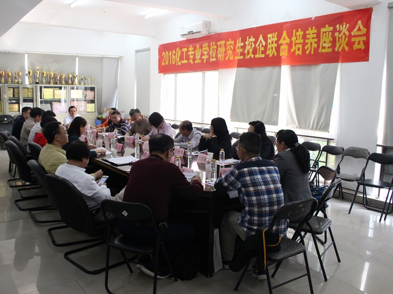 召开了2016化工专业学位研究生校企联合培养座谈会。会议在行政西楼前座309会议室进行。会议邀请了广东省天赐高新科技有限公司总工程师张利萍等十多位企业总经理、高级工程师,与学院领导齐聚一堂,共商化工专业学位研究生培养的方向和方式。