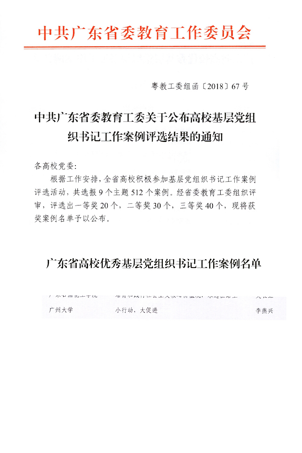 化学系学生党支部书记李燕兴同志牵头撰写的《小行动,大促进》获广东省高校基层党组织书记工作案例评选二等奖。