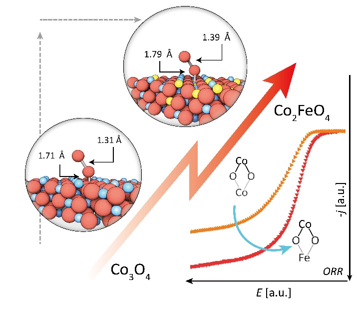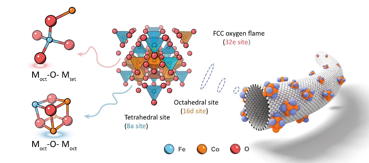 清洁能源材料所刘兆清教授研究团队和澳大利亚纽卡斯尔大学马天翼博士合作将杂化尖晶石Co2FeO4/(Co0.72Fe0.28)Td(Co1.28Fe0.72)OctO4纳米颗粒生长在N掺杂碳纳米管(NCNT)上,将其作为双功能电极应用到锌空电池上,展现了高功率密度 (90.68 mW cm-2) 以及在大电流 (50 mA cm-2) 下较强的耐用性。研究成果提出将Fe引入到Co3O4晶格用以激活八面体Co的氧催化活性的思路,研究了本征活性的增强与电子结构的关系,发现在双重效应的作用下,Fe掺杂的CO3O4耦合的碳纳米管材料显示出接近贵金属的氧催化活性,实验和理论计算均证明,Co2FeO4催化性能的增强与八面体Co性质的改变有关。该研究成果发表在化学类顶级期刊《德国应用化学》 (IF = 12.257) 上, 并被遴选为Angew. Chem. Int. Ed. 的VIP论文 (Very Important Paper) 和封面论文 (Inside Back Cover),禁漫天堂