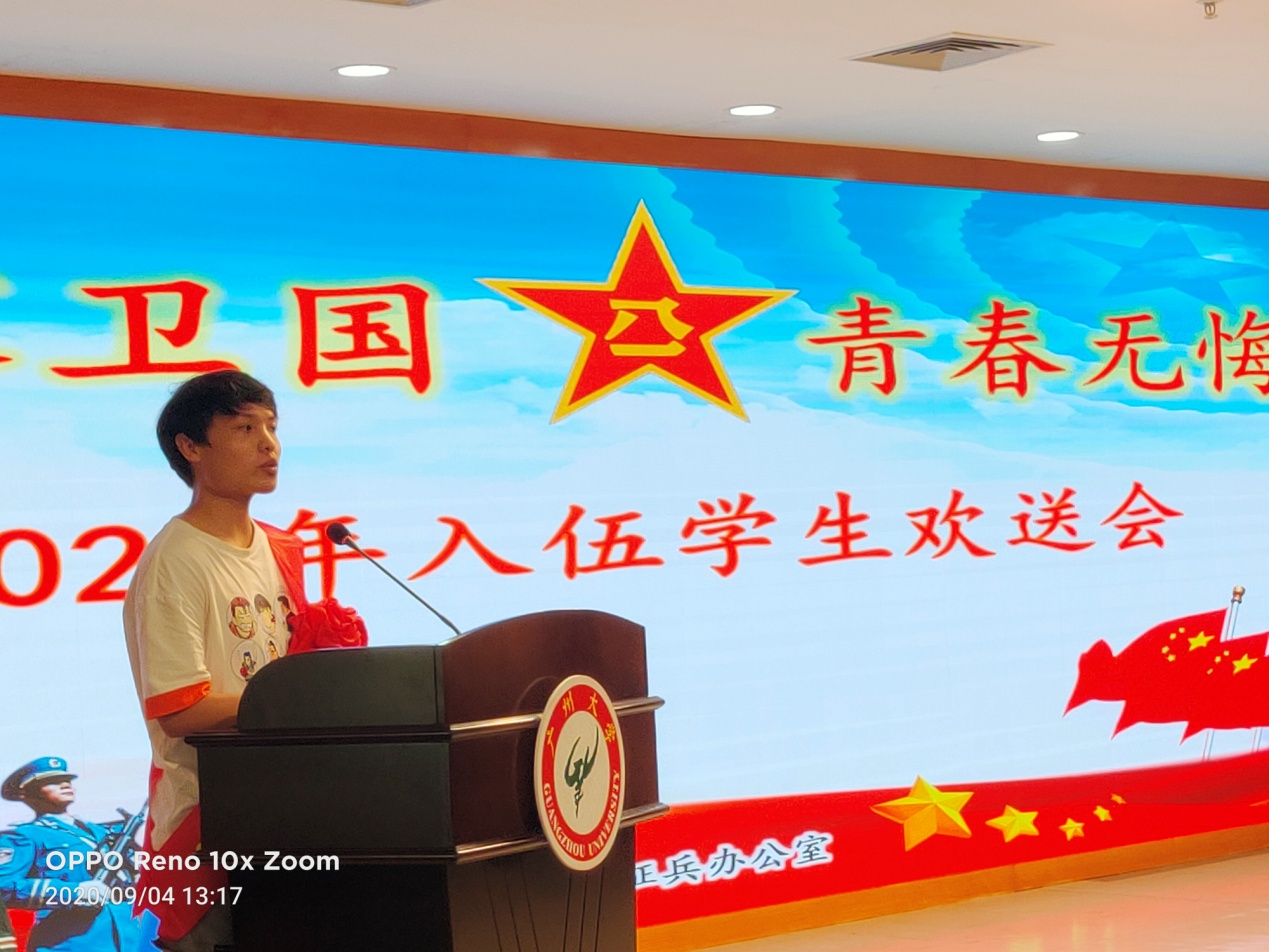 9月4日,学校举行2020年夏秋季入伍学生欢送会,来自全校16个学院和4个二级学院的70名同学,带着学校领导的殷殷嘱托,带着同学们的深深祝福,应征入伍,保家卫国。其中就有禁漫天堂