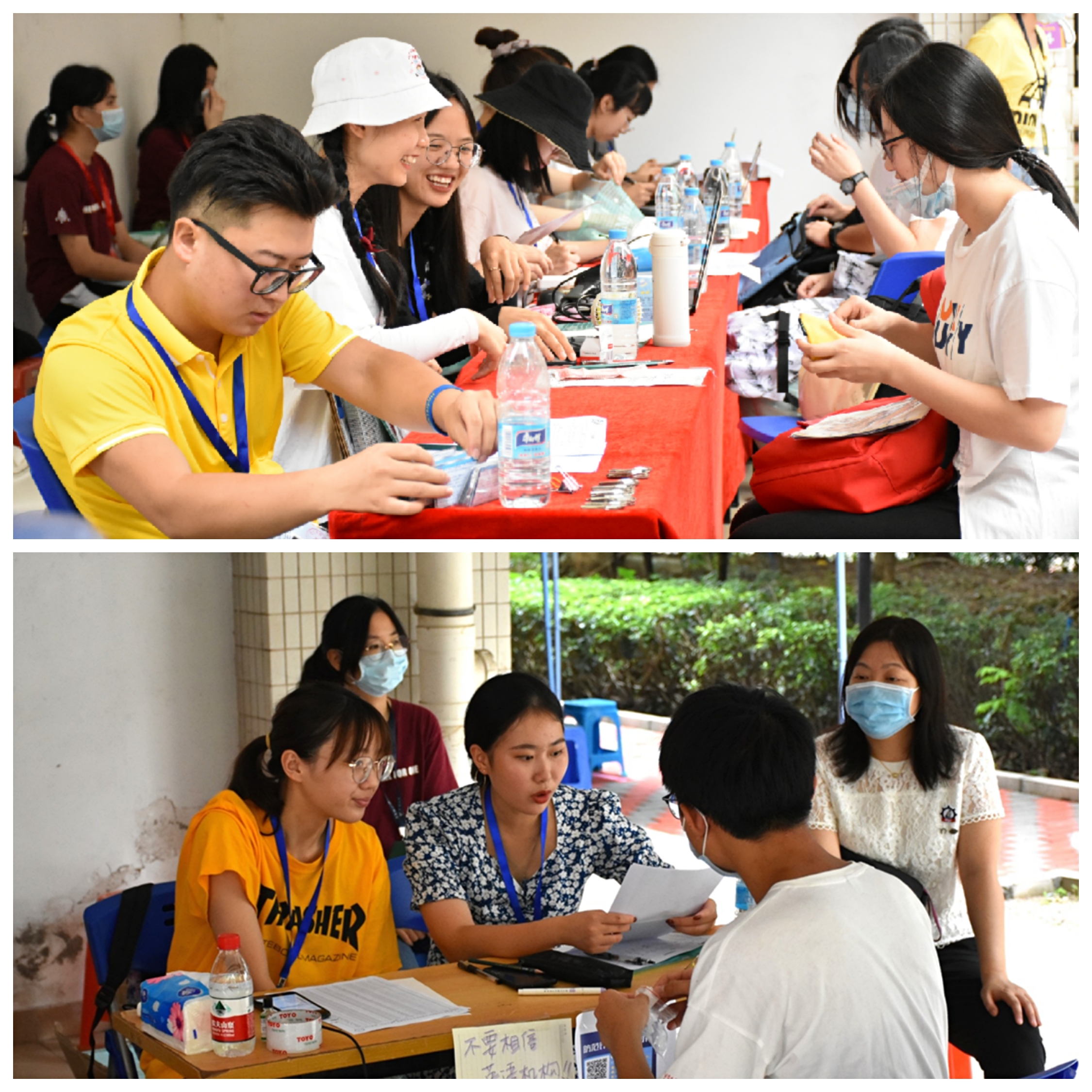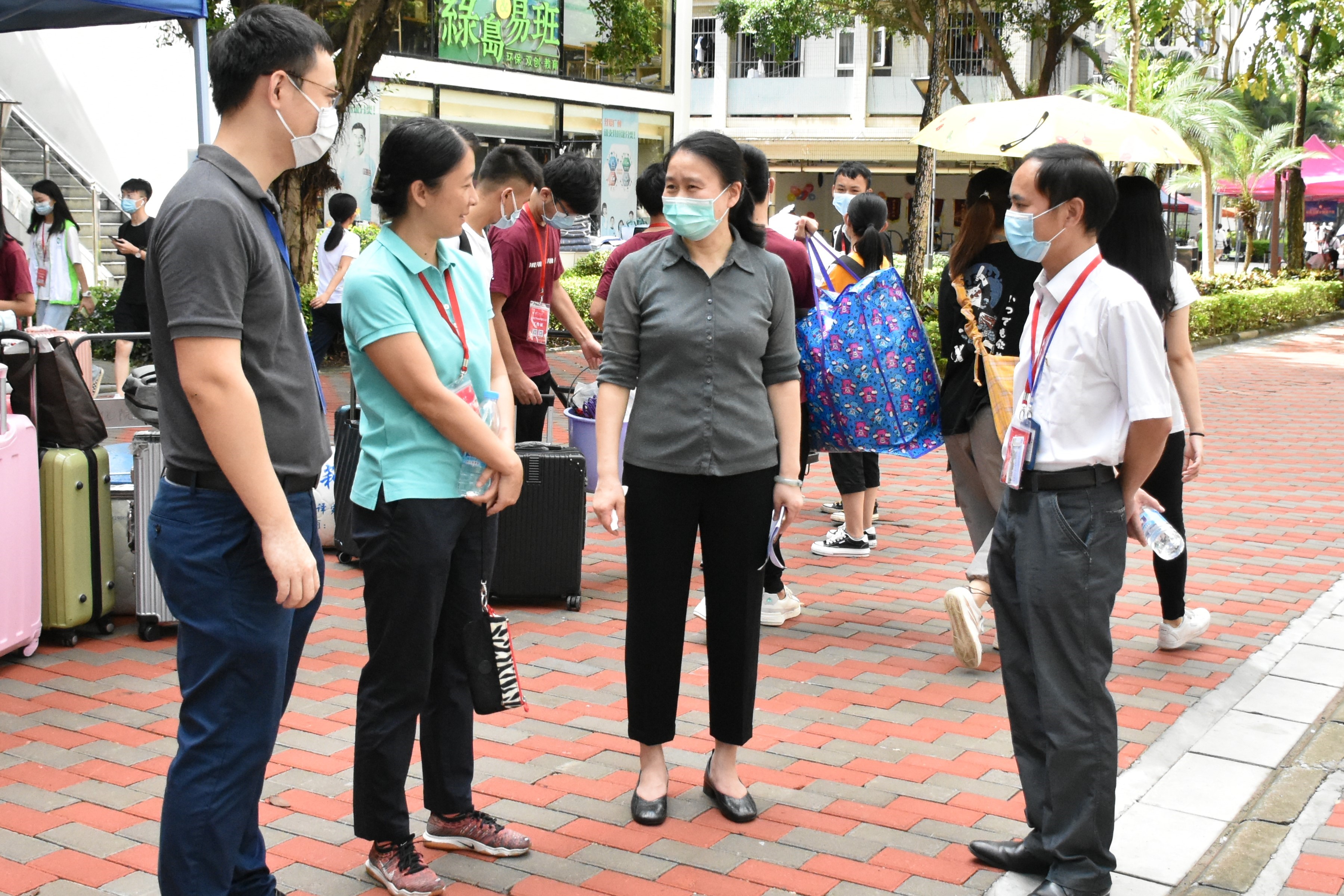 虽然新生家长不能入校,但有这样一群志愿者们,一对一、多对一做好各项服务工作。新生同学拎着大包小包,沐浴着明媚的阳光,脸上洋溢着兴奋和喜悦,无处不宣告着对新生活的期待和向往。