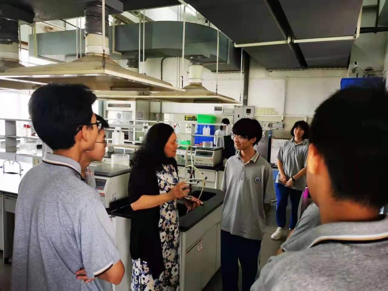 韩冬雪副院长、邹汉波副院长、以及实验中心的老师热情接待了广东华侨中学的师生。