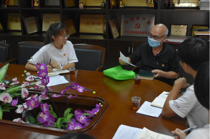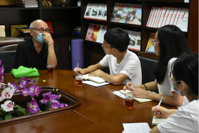 黄老师精神矍铄,端着茶杯欢迎我们,十分热情。我们正是口干舌燥,便没有做过多客气,道谢着接过茶杯,与黄老师一起在桌边围坐下,开始了当日的“茶话会”。