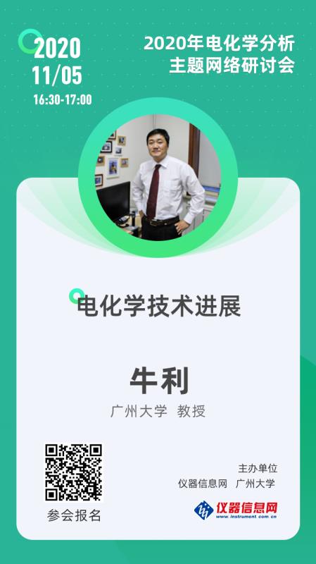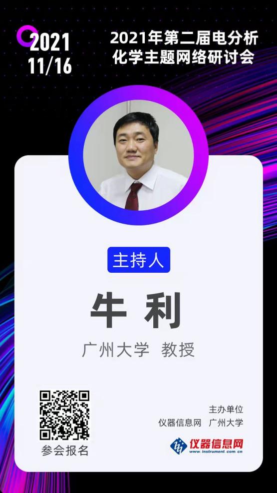 2021年11月16日,仪器信息网联合牛利教授继续举办了“第二届电分析化学主题网络研讨会”,针对当下电分析化学相关研究热点进行了探讨,为电分析化学相关从业人员搭建沟通和交流的平台,以促进我国电分析化学相关仪器技术及应用的发展。本次会议邀请到了来自南京大学、湖南大学、东南大学、武汉大学及中国科学院北京化学所的7位行业知名专家学者(杰青长江等国家级专家),本次会议报名人数超过了1000人。