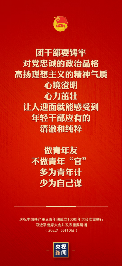 今天(10日)上午,庆祝中国共产主义青年团成立100周年大会在北京人民大会堂隆重举行。中共中央总书记、国家主席、中央军委主席习近平出席大会并发表重要讲话。