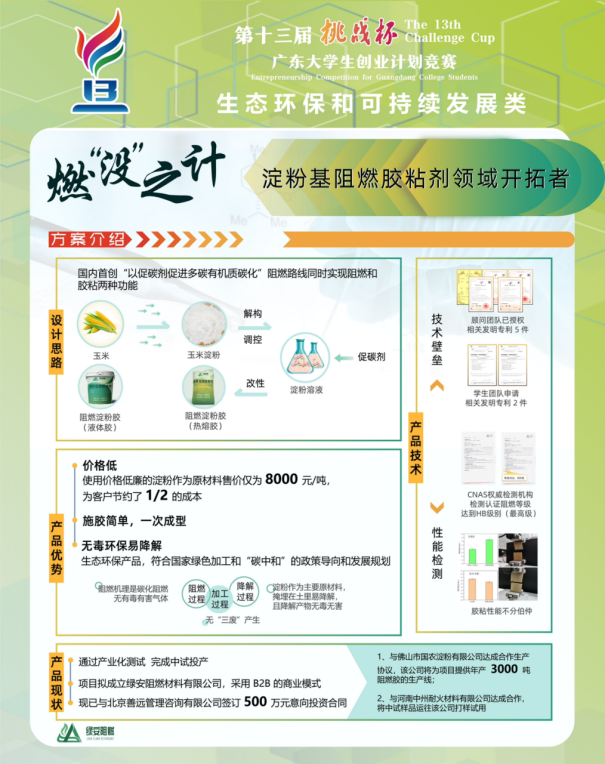 一、金奖项目——燃“没”之计——淀粉基阻燃胶粘剂领域开拓者