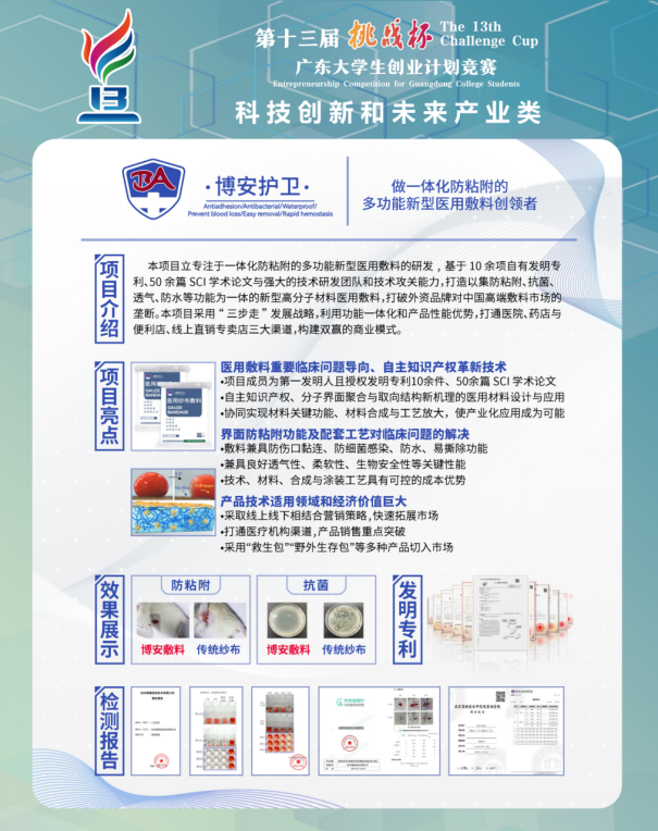 二、银奖项目——博安护卫 做一体化防粘附的多功能新型医用敷料创领者”