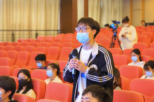 在学生提问互动环节,同学们围绕“如何在本专业领域中寻找先机,于变局中开新局”、“升学对于未来从事科研的重要性”以及“新时代科技成果转化”等焦点问题与牛院士展开热烈讨论。同学们表示听完讲座深受鼓舞且受益良多,也坚定了脚踏实地做科研的决心。