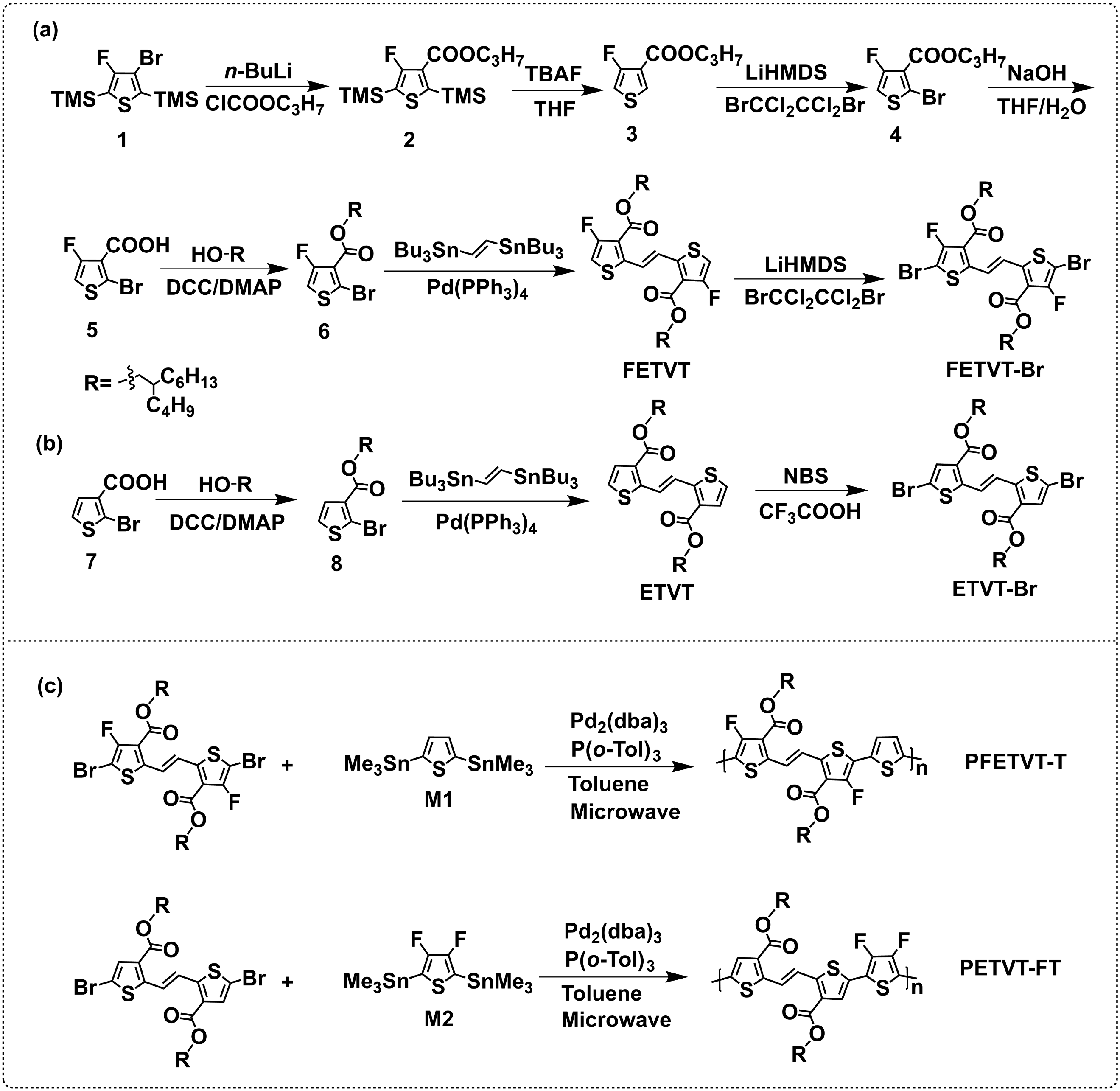 全聚合物有机太阳能电池由于其具有良好的热稳定性和机械性能而备受关注。随着小分子受体高分子化策略的发展,基于全聚合物有机电池的能量转化效率已经达到18%。然而,这些高效的给受体材料通常是由稠合的给体和受体单元构成,其复杂的合成步骤和昂贵的材料成本不利于进一步大面积应用。聚噻吩及其衍生物由于其结构简单、合成步骤短和原料成本低等优势,被认为是推动有机电池走向进一步应用的关键材料之一。但是,聚噻吩由于其较高的HOMO能级和较强的结晶性导致其与受体材料(尤其是聚合物受体)的能级匹配性差且很难形成理想的共混膜形貌。