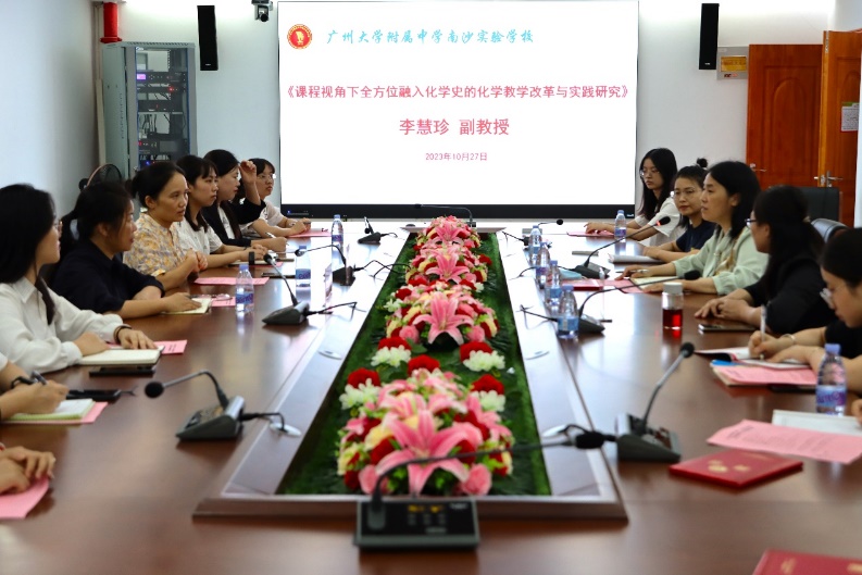 双方就《课程视角下全方位融入化学史的化学教学改革与实践研究》进行了深入的教学交流,强调教师应立足于思政的背景下,尊重史实,在基础上再创新,让化学史更好地为教学服务。