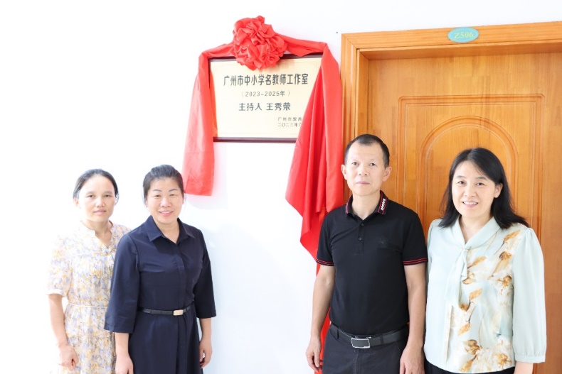 随后由李建国副校长、邹汉波副院长、李慧珍副教授为王秀荣教师广州市名师工作室揭牌。