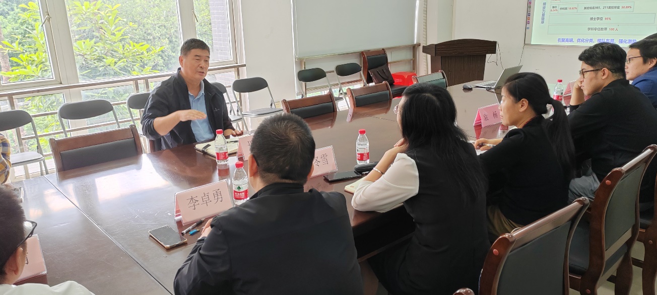 院长韩冬雪、党委书记李卓勇分别介绍了学院总体情况、博士点申报情况及党建工作概况,汇报了正在重点推进的工作,并谈了面临的主要困难和问题。