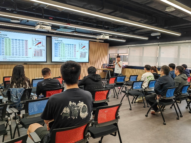 6名研究生万浩,罗志佳,郭淑雅,姬博,杨雨娟和方少健分别作了学术报告,忻浩忠和马凯凯团队的学生代表介绍了他们的科研实验室情况和研究进展。随后,双方团队就科研、学习、生活等情况开展自由交流。此外,访学团还与香港科技大学化学及生物工程学系的高寒宇团队进行了初步交流,商定了后续双方学生交流访问的计划。