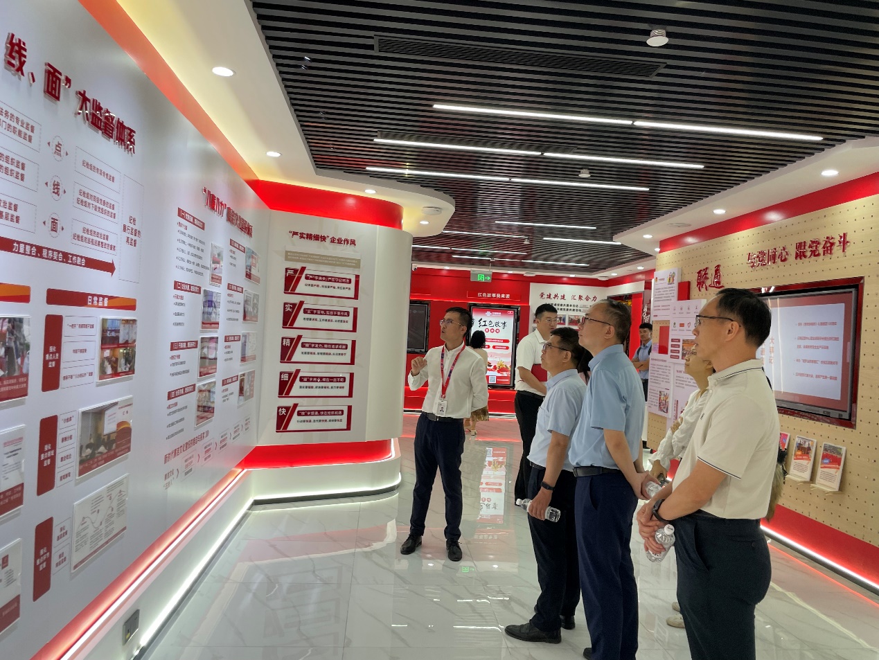 广州联通党员政治生活馆由党旗高扬风帆劲、守正创新谋新篇、团结奋斗向未来、激浊扬清守正气、学习教育强本领等专区组成,集中展示了广州联通深入学习贯彻党的二十大精神以及在党的建设、廉洁建设、禁漫天堂等方面的生动实践及工作成果。本次党日活动以“激浊扬清守正气”的党风廉政建设内容的参观学习为主。广州联通党员代表介绍了“点、线、面”大监督体系、“八廉八力”廉洁文化建设体系以及“严实精细快”的企业作风。两支部党员就廉洁建设方面的经验和成果进行了交流分享,全体党员边看、边学、边思、边悟,在参观交流中学习先进经验、取长补短、拓宽思路,更加坚定学纪明规的决心与信心。