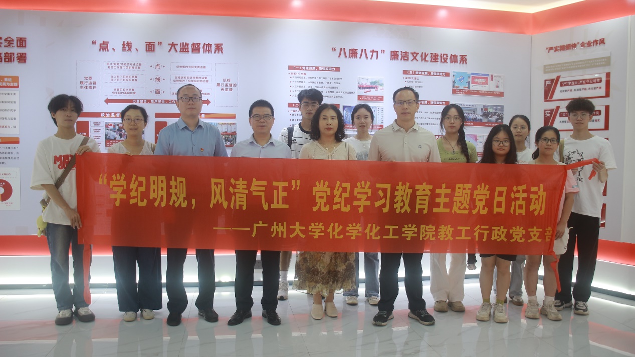 行政党支部前往广州联通党员政治生活馆开展“学纪明规,风清气正”党纪学习教育主题党日活动,学院党委书记李卓勇、副书记李红宾带领支部党员参加了学习活动。