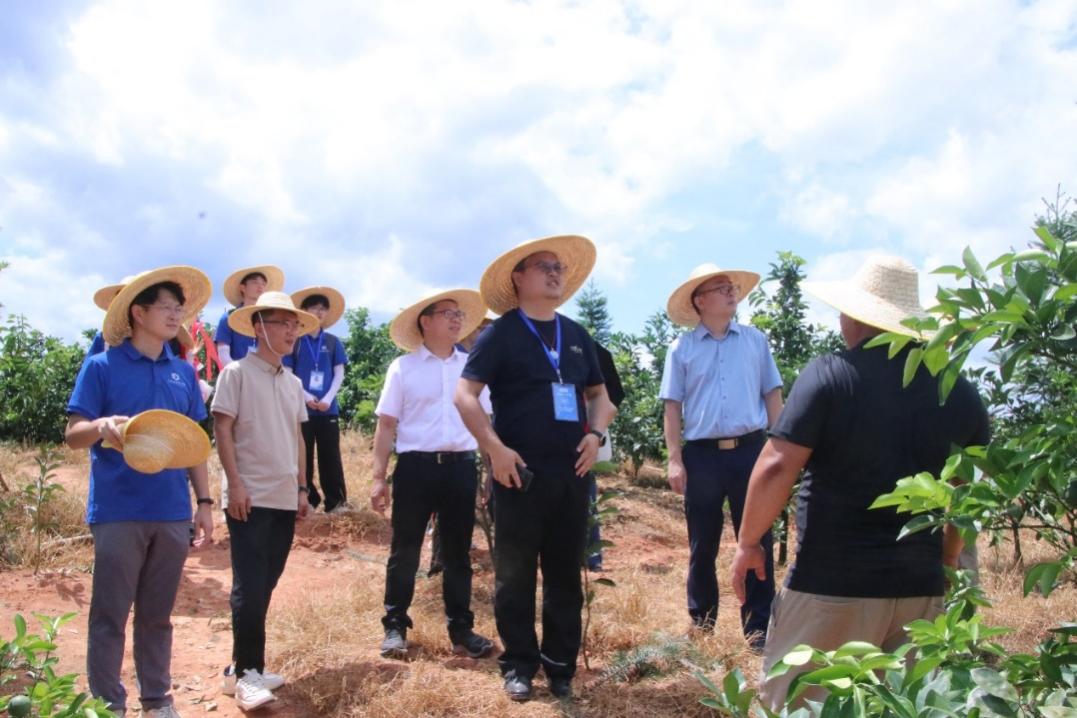 突击队在党委李卓勇书记和指导老师们的带领下,深入当地农业生产基地,探访脐橙种植和林下灵芝生长经营情况。旨在进一步建立产学研融合的农业农村科技创新联盟,组织农业科研攻关,推进科技资源合理配置,加强创新平台建设。