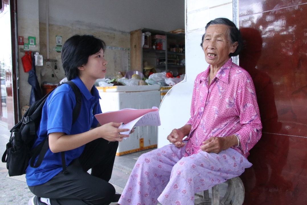 (图为突击队与村民交谈进行灾后及乡村基层问卷调研)