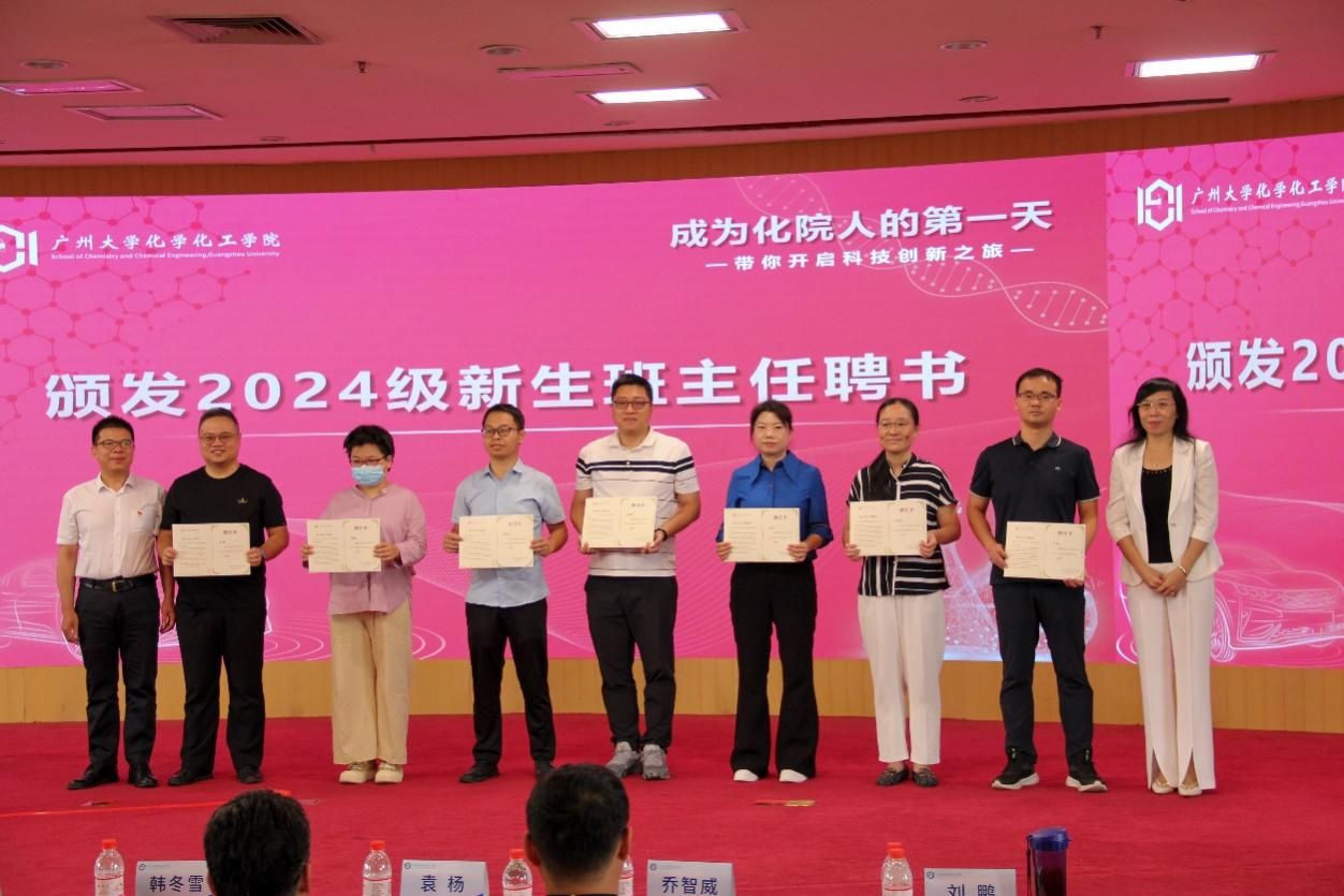 为表达学院对班主任老师工作的信任和期待,学院党委书记李卓勇、院长韩冬雪为24级新生班主任代表刘鹏、徐秀彬、钟如意、陈文斌、胡琼、韩亭亭、蒙玲老师授予聘书。