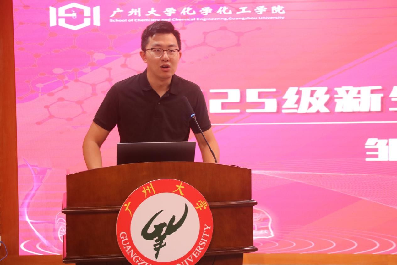 新生班主任代表邹宇聪老师欢迎新同学加入化院,他分享了自身成长经历,建议新生们在大学学习中要转变学习方式,从中学的被动求知转为大学的主动求知,且说明了大学不局限于学习,建议同学们要勇于试错,全面发展,无悔于自己的青春。