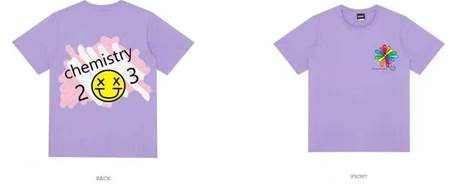 班服的设计是以手写英文单词“chemistry”代表化学专业;以“笑脸”象征乐观;以代表卤素的字母“X”为眼睛部分;以代表碘元素的字母“I”经过艺术加工后作为“笑脸”的嘴巴部分。“笑脸”嵌在“203”的数字“0”上,代表班级的共同精神内核是乐观。班服前面的徽章和班旗的图案相同,是以各种元素为花瓣组成七彩的花朵。花朵下方有英文单词“chemistry”和数字“203”,象征每个有着独一无二的个性但有着共同理想信念的个体共同组成化学203这个大集体。