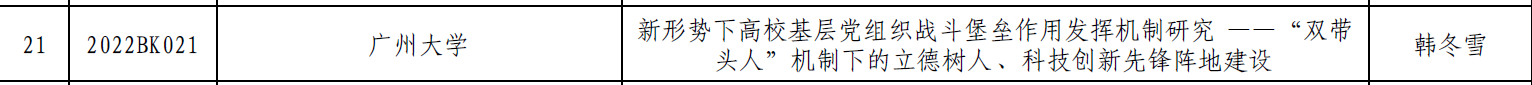 此外,2023年2月24日,广东高校党建研究学会公布了2022年党建研究课题立项的通知。省高校党建研究会组织开展了2022年党建研究课题申报、评审工作,共收到课题申报书689项,其中本科院校347项,高职高专院校181项,民办院校161项。经专家评审,评选出立项课题300项,其中本科院校150项。我校共立项3项,禁漫天堂