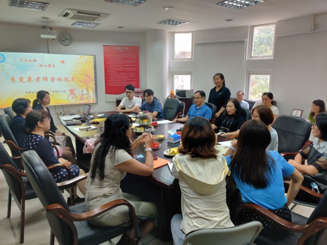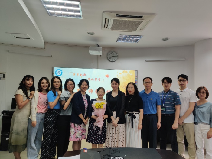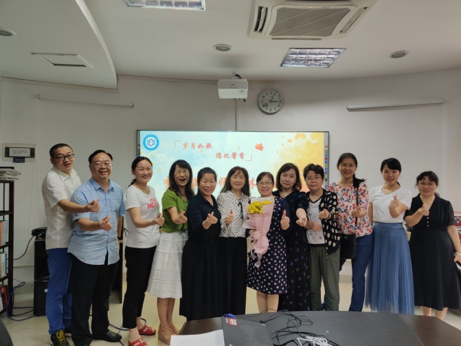 行政党支部和学院分工会联合举办教师荣退会,为五月退休的李楚英老师举办了一场温馨的荣休仪式。荣退会由学院党委副书记杨艺主持,党委书记周海兵、院长韩冬雪、分工会主席郭云萍及多名教师代表出席活动。