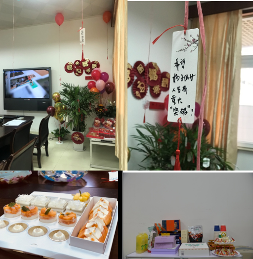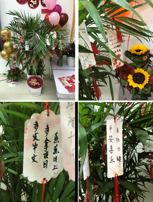 在几位热心老师的帮助下,小小的会议室被布置得温馨可爱、充满了年味。
